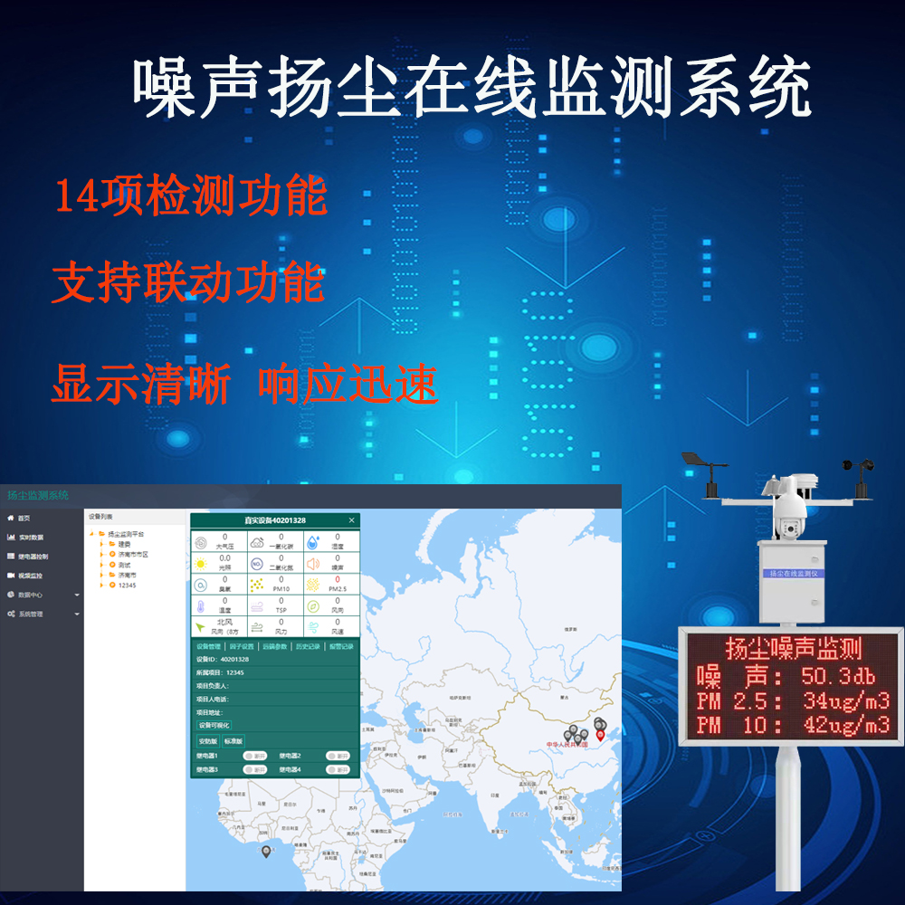 系統(tǒng)能夠?qū)崟r監(jiān)測環(huán)境中的噪音和揚(yáng)塵水平,及時發(fā)現(xiàn)異常情況,并提供預(yù)警功能,有助于采取及時的控制措施。